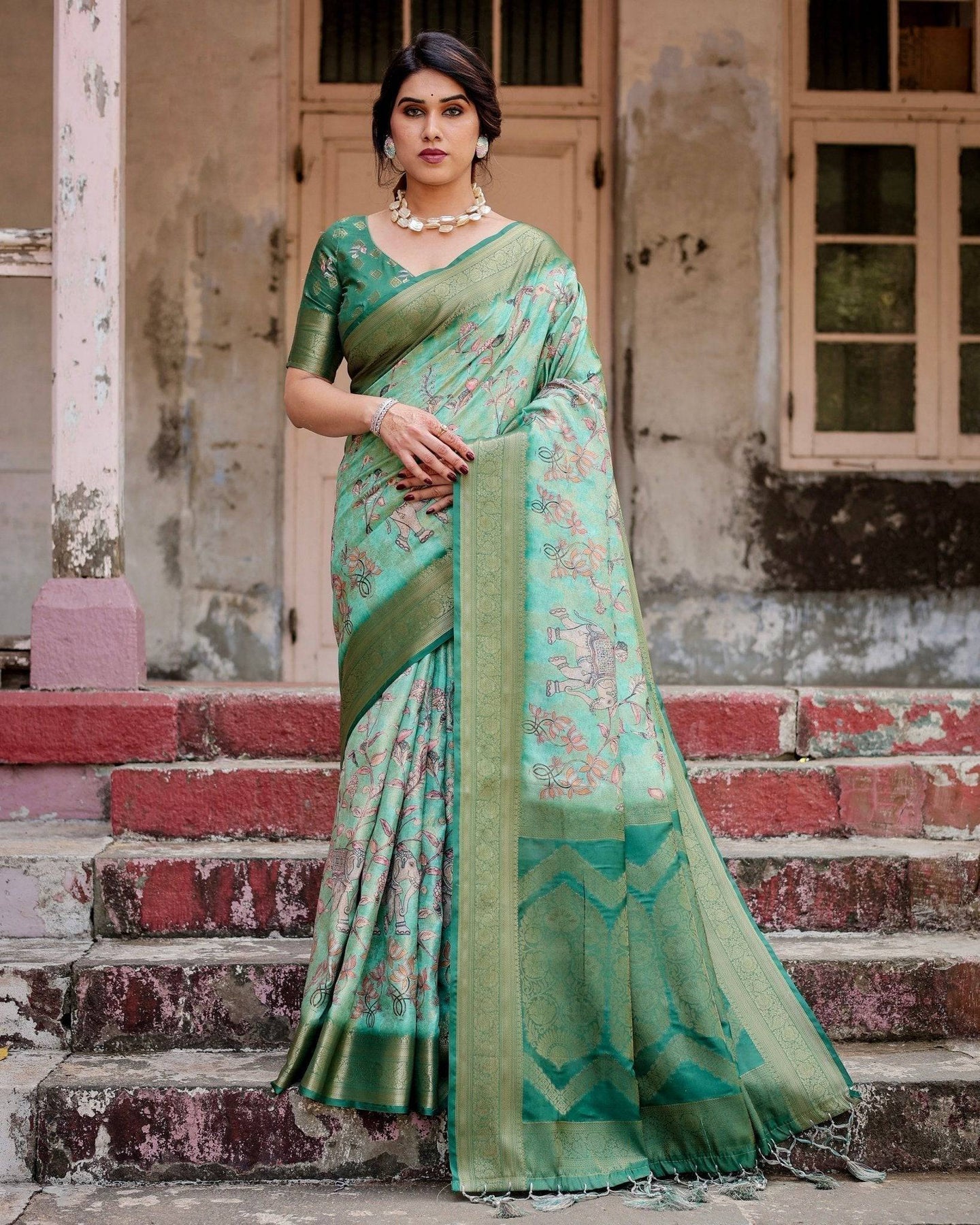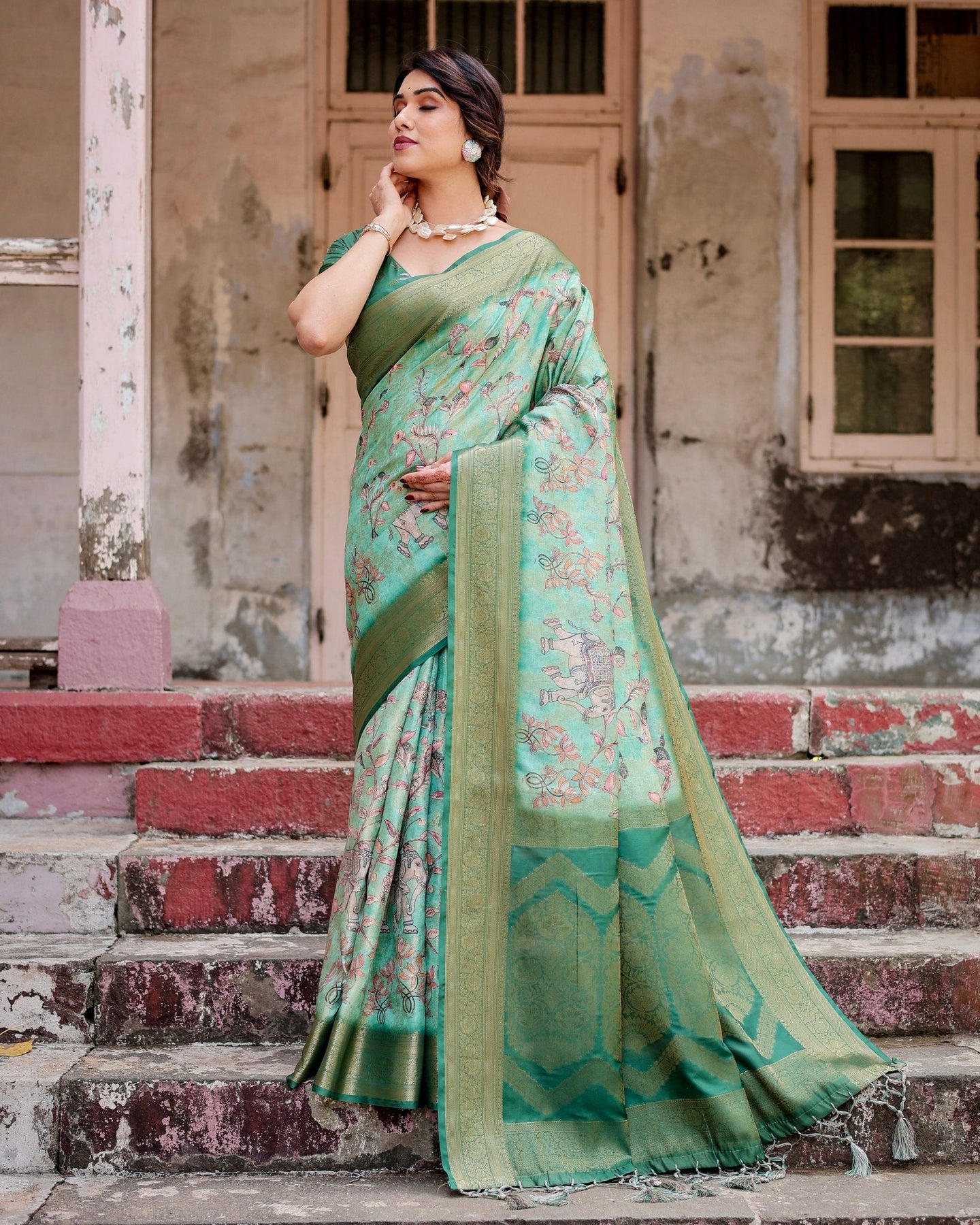Graceful Green Banarasi Silk Saree with Intricate Floral and Elephant Weaves