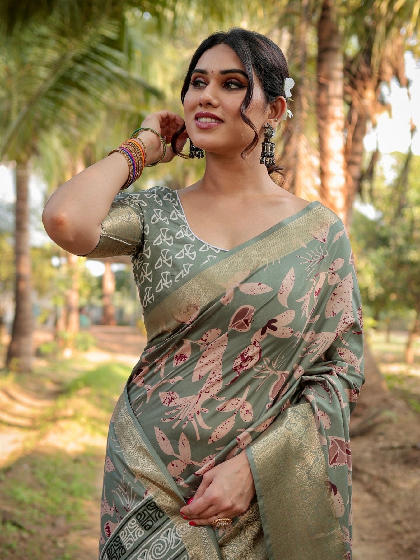 Embrace the timeless elegance of this olive green Tussar silk saree, a perfect representation of sophisticated artistry and traditional charm. This saree is ideal for festive gatherings, weddings, or any grand celebration.