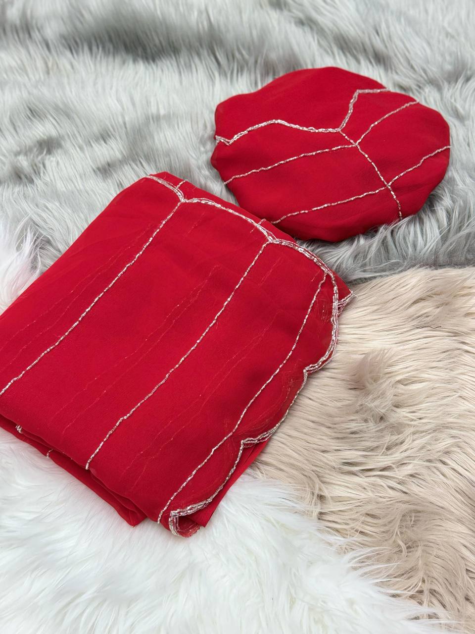 Drape yourself in elegance with this exquisite designer saree, featuring delicate sequin handwork that adds a subtle sparkle to your look. The lightweight and flowy fabric ensures a graceful drape, making it perfect for festive occasions, parties, and weddings. The intricate embellishments enhance the saree’s charm, offering a blend of tradition and modern style. Whether paired with statement jewelry or kept minimal for a refined look, this saree is a timeless addition to your ethnic wardrobe.