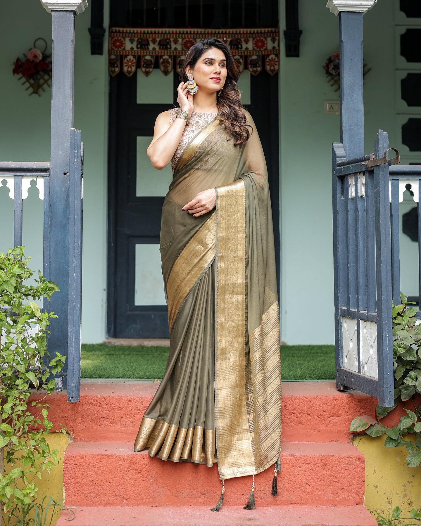 Tassel Edges: Adorned with delicate tassels on the saree edges, adding a chic and playful detail to the minimalistic design.