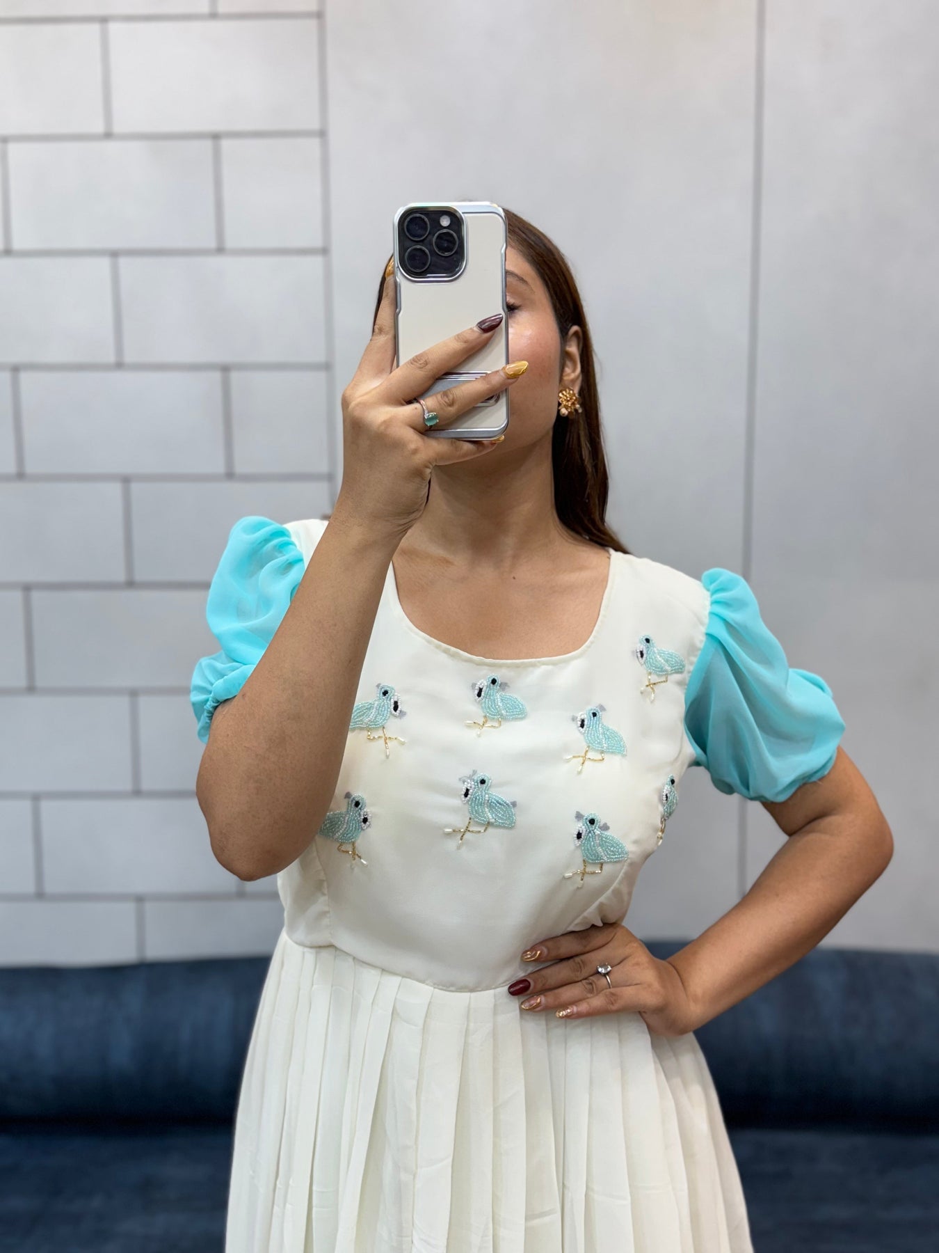 Sky Blue Flowing Georgette Maxi | Beautiful Beads & Kardana Handwork | Day Party Wear