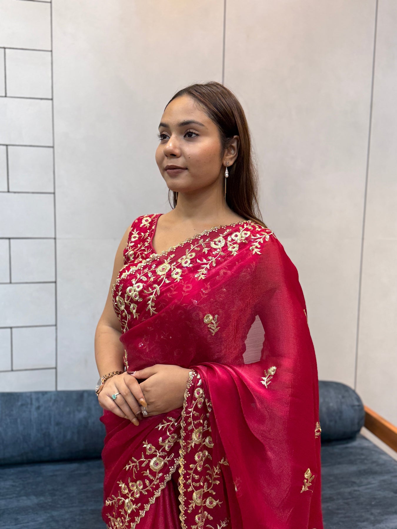 BLOUSE SPECIFICATION:- Fabric: Space Soft Silk Work Type: Embroidery Work 1 mtr. Unstitched