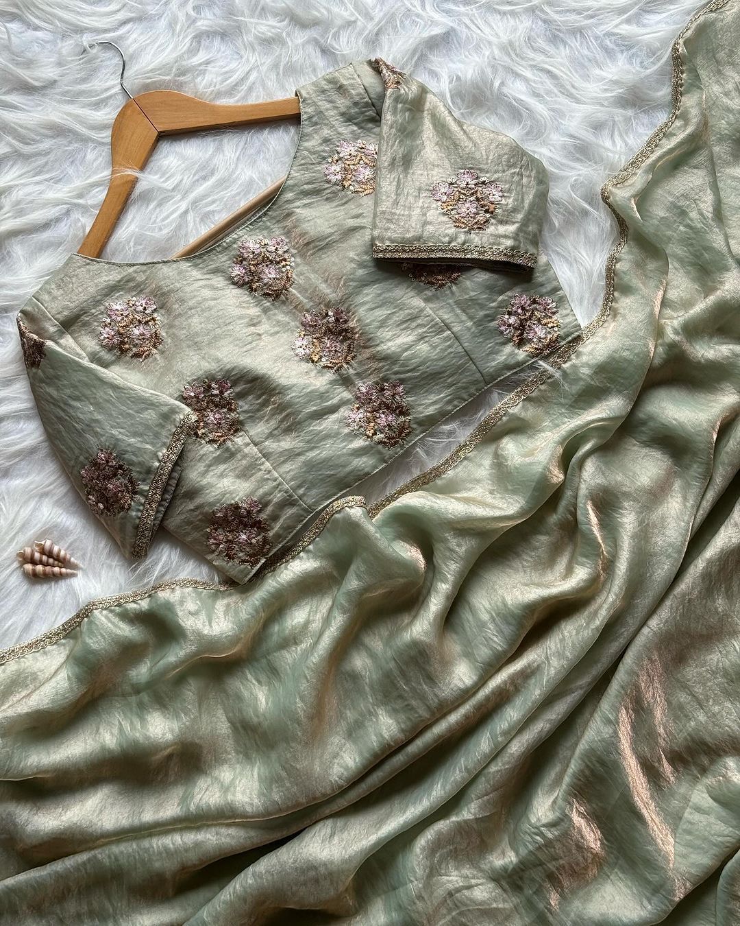 STYLE NEVER END ELEGANT AND PREETY AND HOT SHINING SOFT GOLDEN RICH SAREE