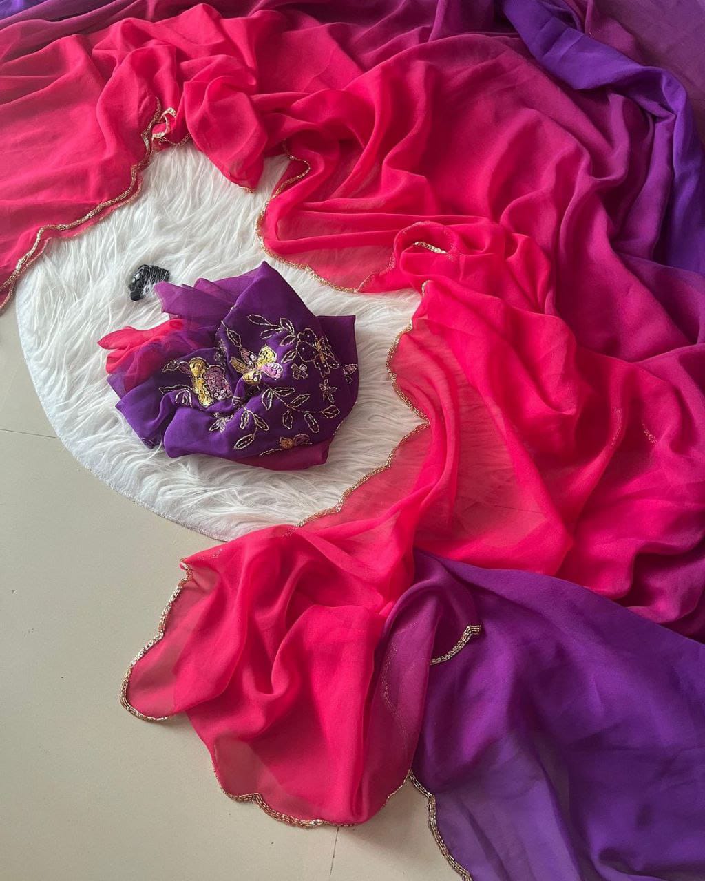 STYLE NEVER END ITS PADDING SO RICH WITH HAND WORK SAREE AND BLOUSE